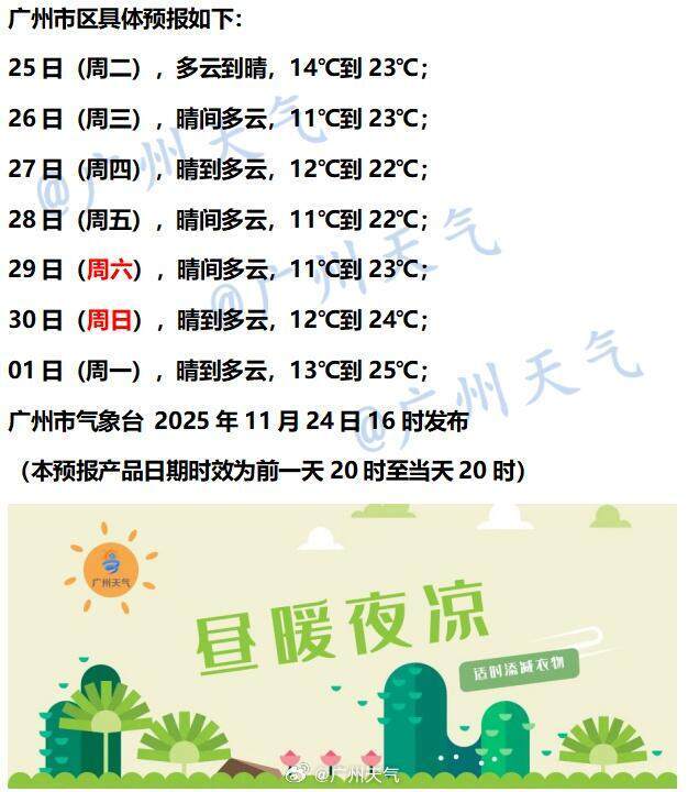 广州方面,今天会有弱冷空气到达,本周最低温逐渐降至11℃,保暖润燥工作不放松!