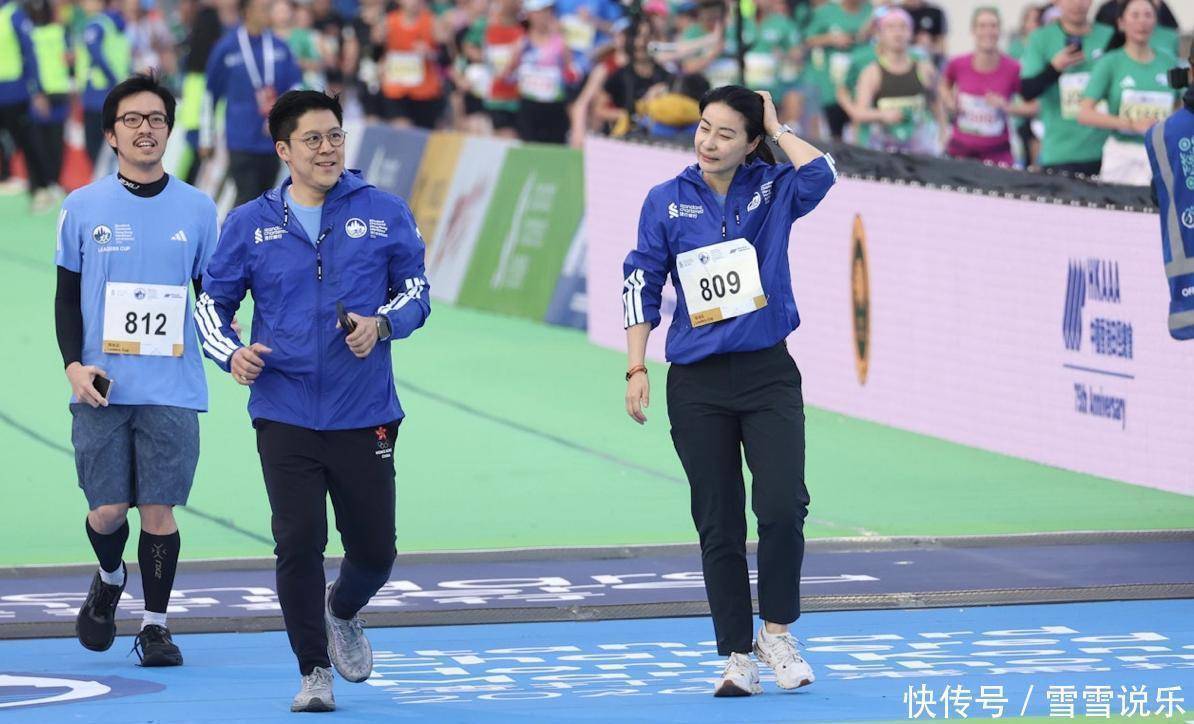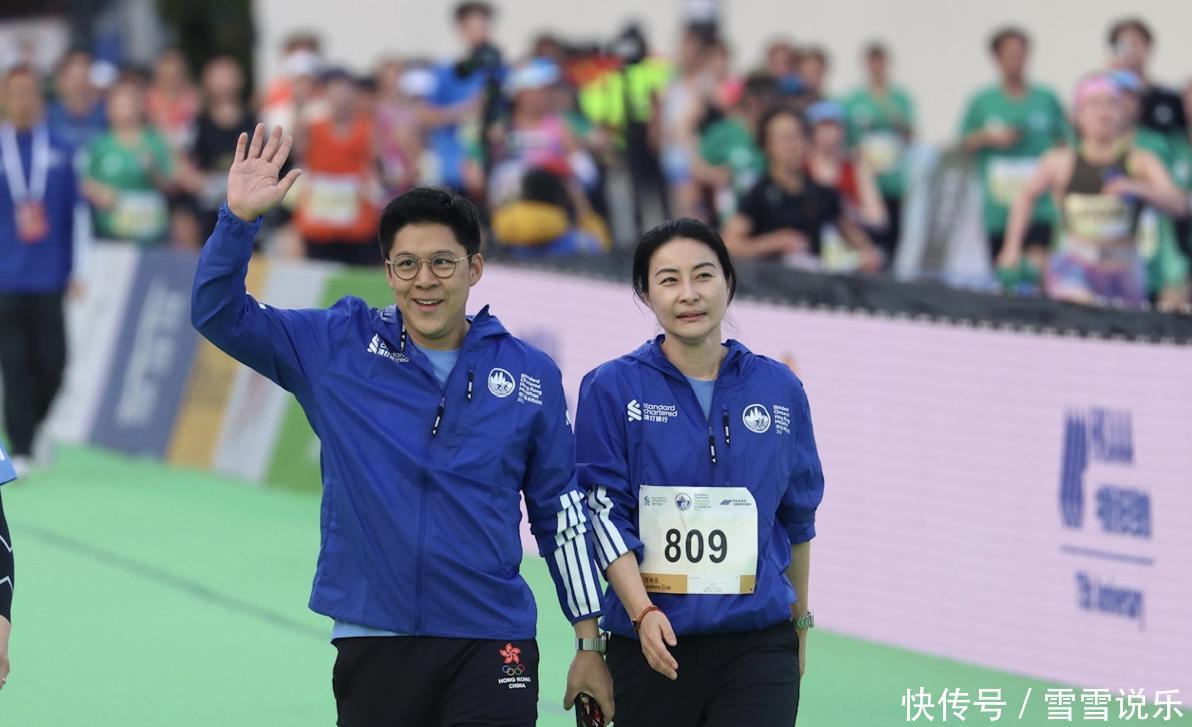 这场2026年的赛事热闹得很,不光有发哥这样的影帝,连政商界也组团出动。郭晶晶和霍启刚就一起亮相“领袖杯”,这是专为名流设的2公里趣味赛。郭晶晶素颜上阵,号码布“809”贴在胸前,跑起来轻快得像散步;霍启刚穿了奥运主题裤,全程跟拍老婆,冲线那一刻比她还激动,活脱脱一个“头号粉丝”。